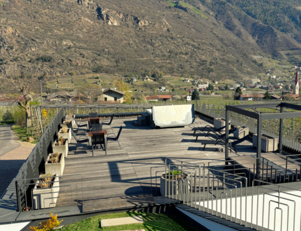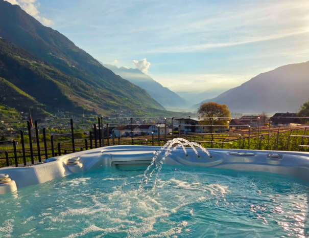 Der beheizte Whirlpool eröffnet den 360° Panoramablick über Naturns und den Vinschgau. Warmes Wasser, frische Bergluft und die Weite der Landschaft verbinden sich zu einem besonderen Ort der Entspannung. Ein Platz zum Loslassen – besonders in den ruhigen Stunden des Tages.